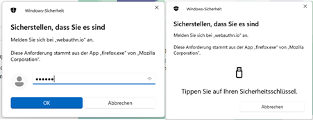 Im ersten Szenario (Cross-Plattform) lässt sich die Anmeldung über Firefox und anderen gängigen Web-Browsern etwa mittels FIDO2-USB-Stick auf Windows, MacOS und Linux ohne Einschränkung durchführen: