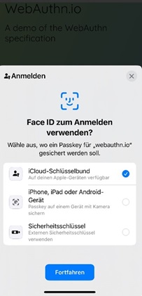 Die Sicherung der Passkeys auf den mobilen Betriebssystemen iOS und Android gelingt durchgängig auf alle Web-Browsern und nativen Apps auf Anhieb: