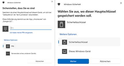 Vorrausetzung ist hierfür, dass auf Windows die Anmeldeoption Windows Hello mit PIN oder biometrischer Authentifizierung aktiviert ist. Auf MacOS dient hierfür die Aktivierung des iCloud-Schlüsselbunds bzw. iCloud-Keychain.